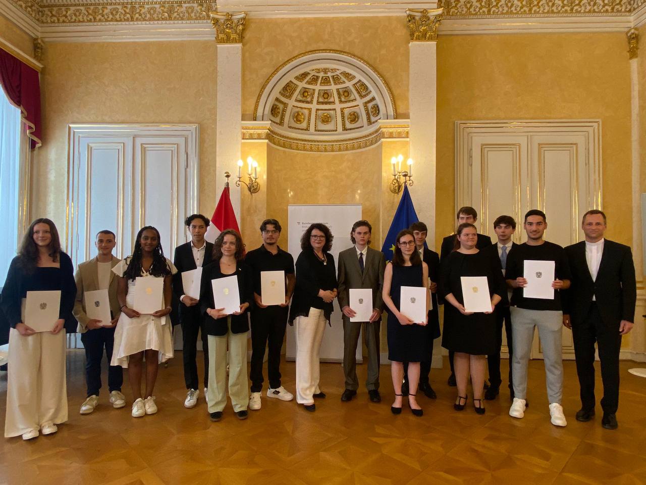 Am Donnerstag, dem 20. Juni 2024 zeichnete Frau Sektionschefin Mag. Doris Wagner die Sieger der Bundessprachenwettbewerbe aus mehreren Sprachen aus. Die Feier fand im Audienzsaal des Bundesministeriums für Bildung, Wissenschaft und Forschung statt.
